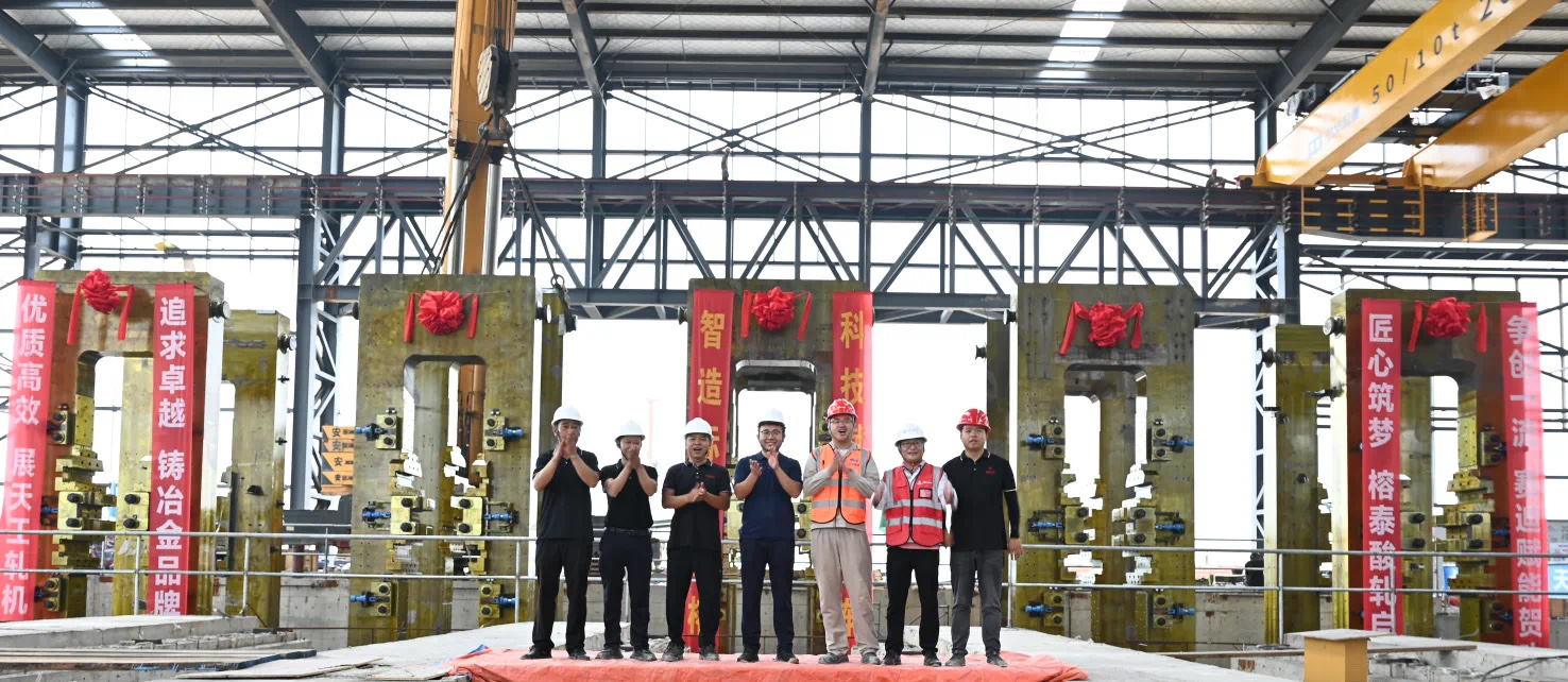 公司供貨的防城港榕泰1450酸連軋CCR385五機架軋機牌坊吊裝成功